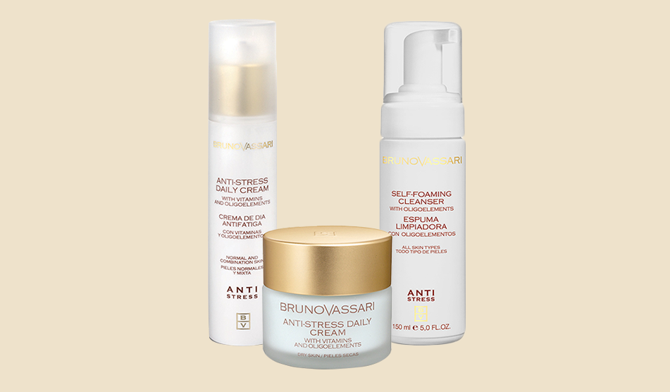 La línea Anti-Stress está enriquecida con un complejo de oligoelementos que estimula la síntesis de proteínas y se traduce en un incremento de las funciones celulares. El rostro adquiere un aspecto sano y relajado..